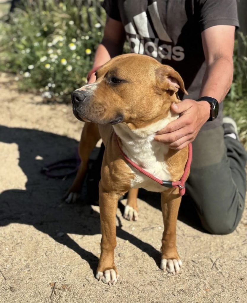 Ana es una amstaff con mucha actitud y aún más encanto. A sus pocos meses ya deja claro que es una perrita lista, juguetona y con mucho rollo. Le encanta pasarlo bien y, aunque tiene su toque de “lianta”, evita el conflicto con otros perros. Prefiere las travesuras con estilo.