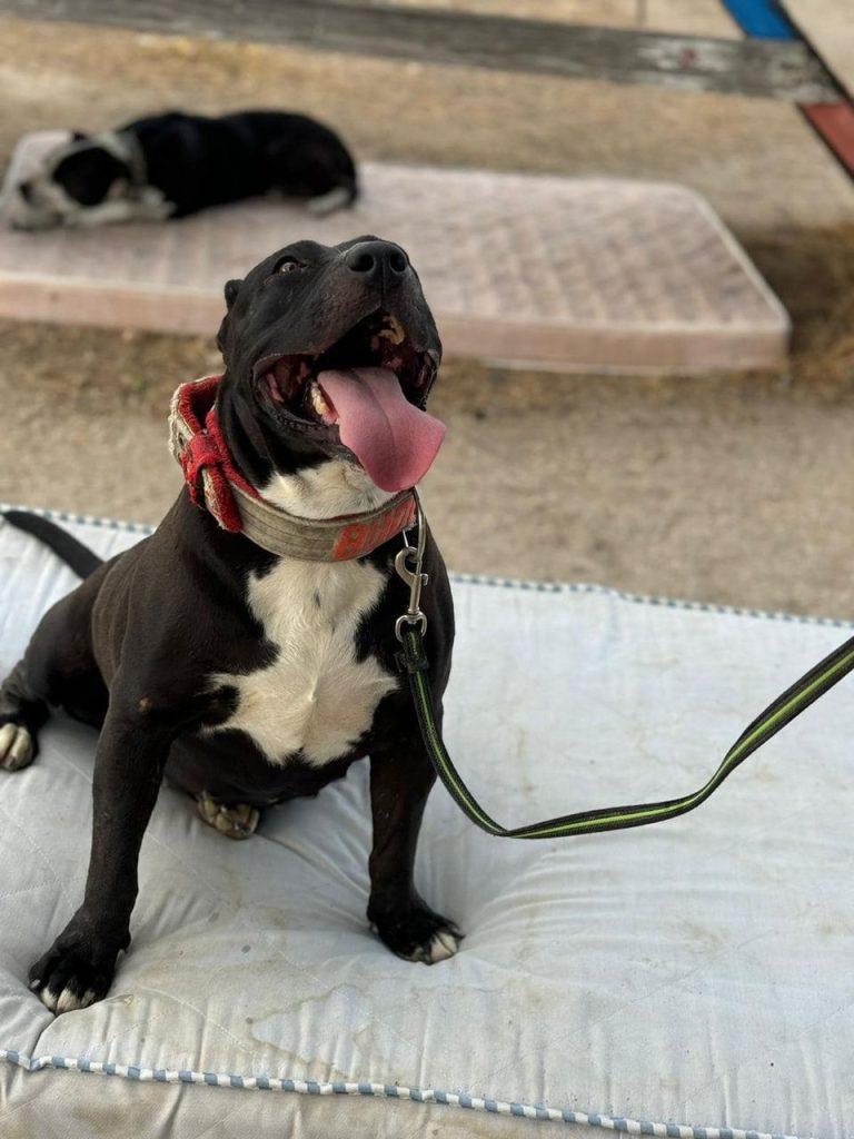 Con otros perros en principio no es mala, pero tiene un puntito debido a ese exceso de intensidad que tiene. A veces ese carácter puede hacer que se descontrole pero con alguien que tenga experiencia y manejo en estas situaciones puede ser una perra que no dé problemas.