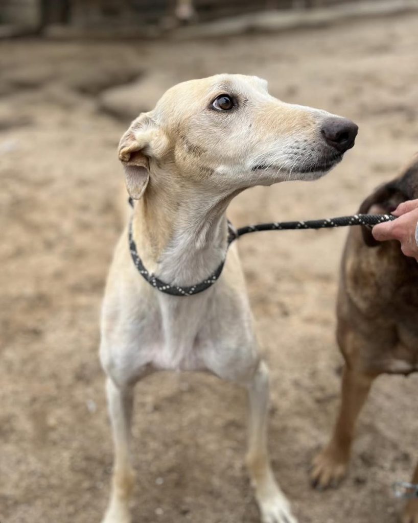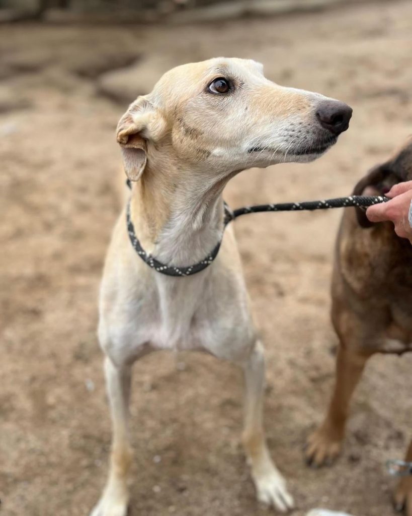 Convive con el resto de perros del refugio sin problema por lo que puede ser uno más en una familia en la que ya haya más miembros caninos.