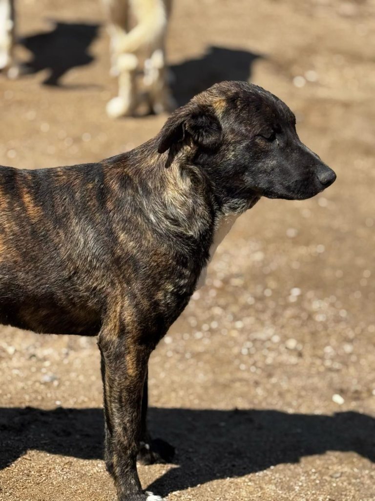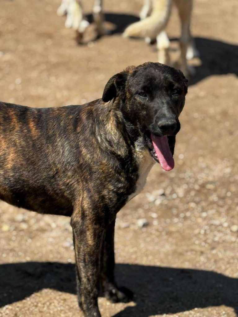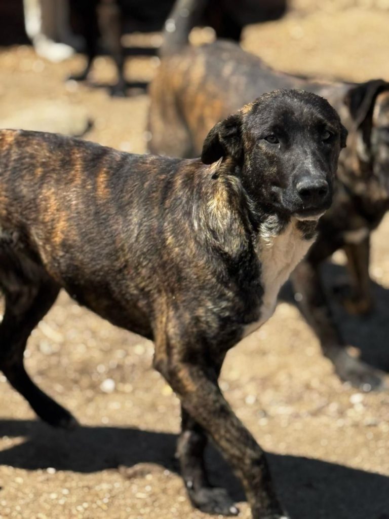 Le encantan los mimos y, cuando confía, disfruta muchísimo del cariño. Con otros perros se lleva genial, es sociable y equilibrado en la convivencia.