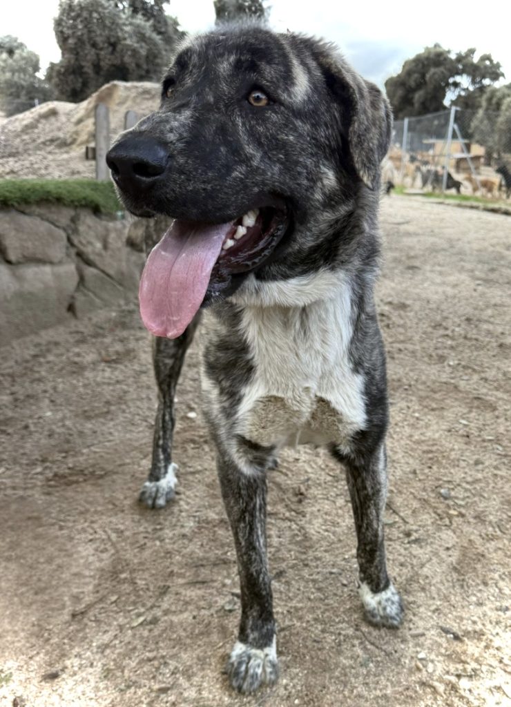 Elvira es una preciosa cachorra de Mastín que enamora a todo el que la conoce. Es cariñosa, divertida y muy buena, con un carácter noble y equilibrado típico de su raza.
