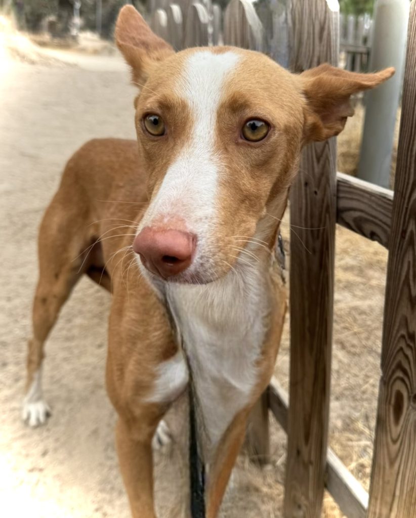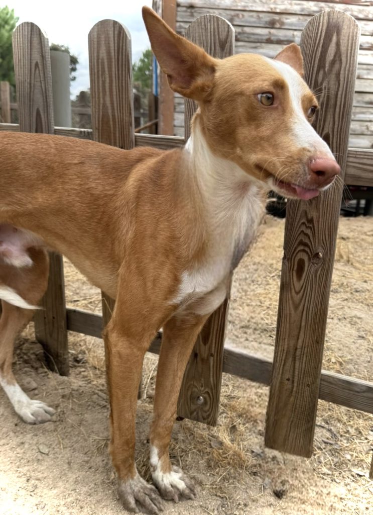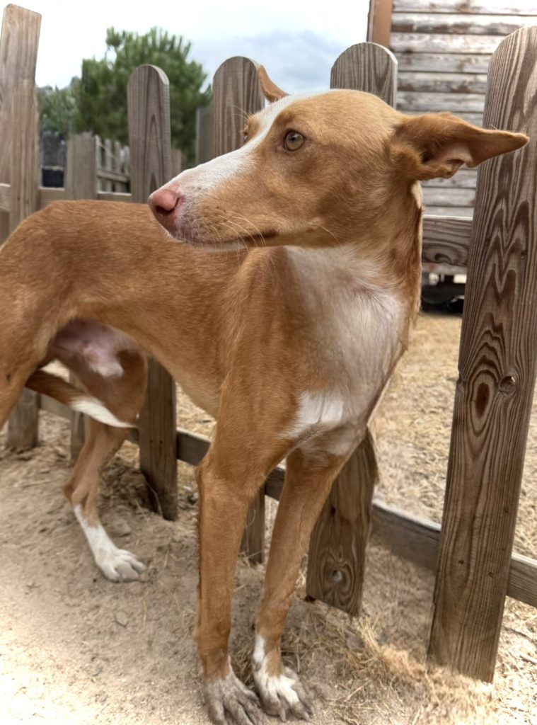 Picasso es un podenquito con una sensibilidad muy especial. Al principio se muestra miedoso e inseguro: los ruidos, los desconocidos y las situaciones nuevas pueden asustarlo un poco. Pero detrás de esa timidez hay un perrito dulce y tierno que solo necesita confianza para dejarse conocer.