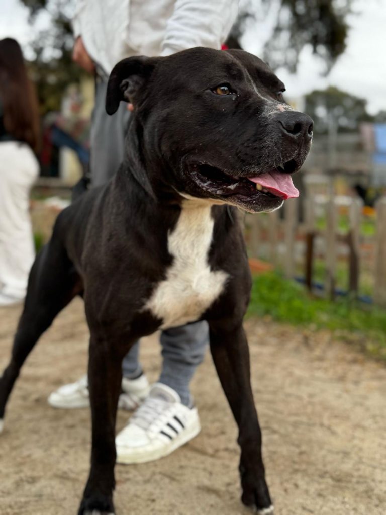 Venom es un perro super simpático, cariñoso y muy cercano con las personas. Le encanta el contacto humano, se deja manipular sin problema y siempre está buscando una caricia o un poco de atención.